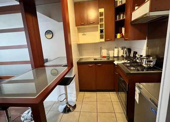 La cocina, equipada сon servicio de tetera/cafetera y hervidor eléctrico, nevera y cristalería, es perfecta para preparar comidas. El Apartamento Departamento Centrico 1 Ambiente está a unos metros de la estación de metro Universidad Católica y a 20 km del aeropuerto Santiago Arturo Merino Benítez.